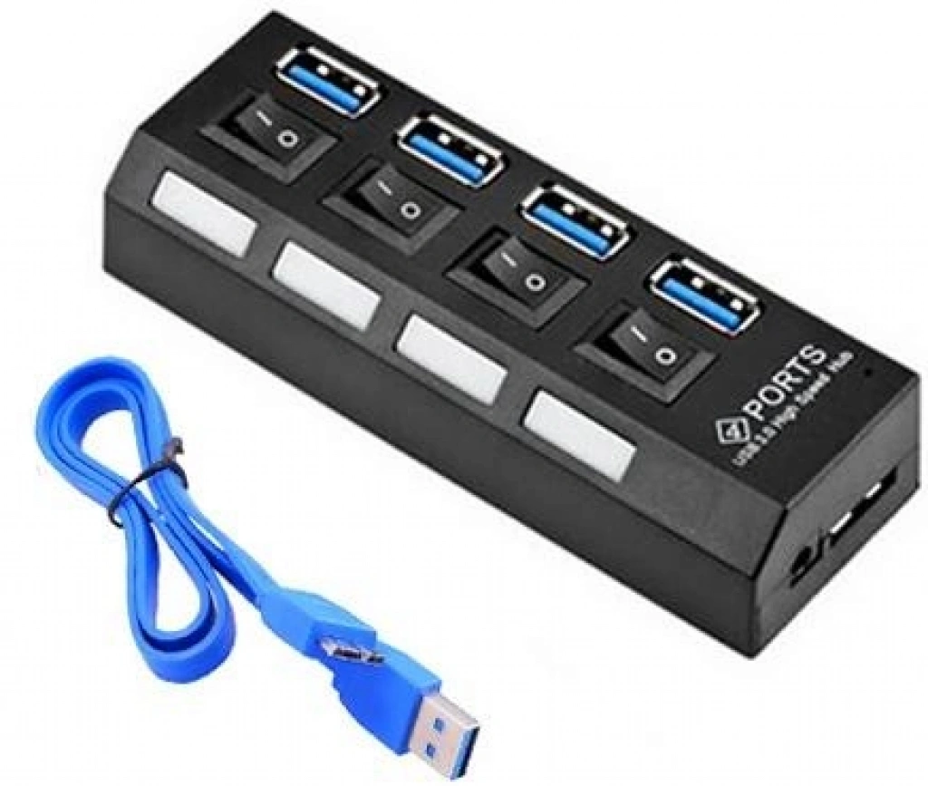Alfais 4863 4 Port Usb 2.0 Hub Çoğaltıcı Çoklayıcı Switch Işıklı Anahtarlı