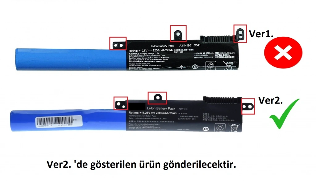 Asus X540MB, X540N, X540NA, X540NA-GO067 Batarya Pil Ver2.