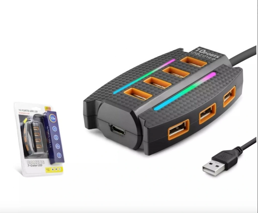 Hadron HDX7036 USB Hub, çok sayıda çevre birimi yönetmek isteyen kullanıcılar için tasarlanmış, geniş bağlantı imkânı sunan bir hub çözümüdür. 10 adet USB çıkışı ve 1,2 metre uzunluğundaki kablosuyla masaüstü, ofis ya da eğitim ortamlarında yoğun cihaz kullanımına uygun bir yapı sunar. Siyah gövdesiyle sade ve profesyonel bir görünüm sağlar.